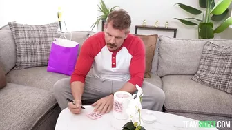 Description: I love fooling around with my stepdad. We are always teasing each other fighting and playing. My mom was sick of it though so she implemented a good deed jar thinking that we had to get along even better. Both my stepdad and I would have to write something that we want the other to do for us pull out one of the pieces of paper and do whatever it says. I was not surprised when his ideas said let me breed you show me your tits and suck my cock. Yet I had no choice but to do whatever he wanted. That was the whole point of the jar right Besides I really wanted him to take me on a Black Friday shopping spree so if I do what his papers say then he ll have to do mine. Letting him fuck me on the couch is a small price to pay especially when his dick is so nice.