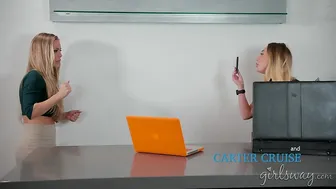 Description: Nicole Aniston has no idea whats going on. Her receptionist is not who she thought she was. The serum that Carter took has now worn off and shes back to her old self again. She states her mission and how she now has the proof to shut her down once and for all. Nicole is a businesswoman and isnt willing to lose everything she worked so hard for. She knows everyone has a price and is willing to pay anything to get herself out of this mess. She offers Carter a deal shell pay her triple what shes getting for this gig. Carter is intrigued by the offer but tells Nicole that that might work but she wants something more. She asks her if shes into blondes. When Nicole gets the message they agree to triple pay and a session. They go back into the office and Carter rips her clothes off and pounces on Nicole. They just fucked but Carter had to watch herself and not blow her cover. Now shes completely uninhibited and free to fuck freely. She takes off Nicole top and starts licking her tits. When the girls finish off their business Nicole remarks how happy she is that they could come to an agreement. Carter is having second thoughts. She tells Nicole she thinks that maybe shell just keep the hard drive. Shes not really down with the idea of Nicoles company colluding with North Korea. Nicole is confused they just fucked and she thought they had a deal. Carter smiles diabolically. Looks like its the end for Aniston enterprises.