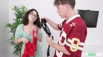 Try on My Moms Lingerie Nerd Girl vs Jocks Cock