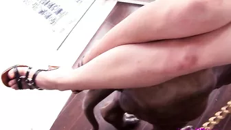Description: After searching for Hanna Reese all over his apartment Bruce Venture finds his wild and crazy babe hanging out on a lion with a leash attached to her neck. This horny babe has sex on the brain and is happy to give up all control to make sure that she gets whatever her man wants. Pulling Bruce s cuck from his pants so that she can watch it get hard as a rock Hannah takes a few minutes to do a seductive striptease that leaves her miniskirt dress on the floor. When she s wearing only the leash she teases her bald twat with the chain and then settles in for a lusty blowjob that conveys every sexy urge this juicy coed has. After pulling Hannah up by her leash Bruce positions her over the lion statue and bends down to lap at her snatch. Finding her nice and wet he rises to his feet and slams his cock into her greedy hole. Unable to control herself Hannah goes crazy moaning and pushing back for every stroke of Bruce s dick. When she gets him on the ground nothing can stop her from going for an orgasmic stiffie ride! As much fun as the couple is having they know it can t last forever. Hopping back onto the lion s back Hannah leans forward for one more pussy pounding. This time when she climaxes she takes Bruce with her as he fills her tight twat with a creampie of cum.