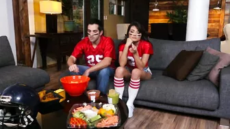 Description: Tiny brunette Adria Rae can t stand to come in second place especially if she s losing out to a silly football game! Bored of watching the Superbowl with her lover she tries to get his attention with some cock rubbing action. But when her handsy advances are shooed away the petite babe sulks off to answer the doorbell s ringing. Seeing pizza guy Lucas Frost standing there looking like quite the hot delivery himself Adria is suddenly craving another kind of XL Italian sausage! Easily seduced with a gagging blowjob Lucas scoops up the giggly harlot for a sexy pounding in Standing Cowgirl before fucking her silly on the kitchen table. As the cuckolded boyfriend dozes in front of the TV Lucas delivers a tasty facial onto Adria s waiting lips!