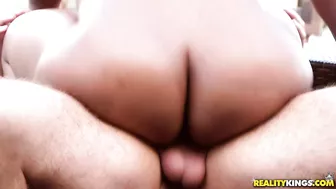 Description: You have to see big tit jiggling round ass wiggling Ms. Yummy to believe her. This saucy ebony enlisted her friend to help her make a naughty video of herself squeezing her thick curvy frame into teeny bikinis. Then we took the action to the pool so Ms. Yummy could twerk her bumcakes in a little red thong until her man Chad White took notice. Chad oiled up Ms. Yummys mammoth mounds and bouncy booty then the camera captured Ms. Yummy in her element taking Chads cock as far down her throat as she possibly could. Next Ms. Yummy bent over for a doggystyle deep dicking by the pool followed by some reverse cowgirl with her hooters flopping every which way. This really was a naughty video Chad finished all over Ms. Yummys nice big ass which only made her more wiggly. Try not to get lost in the jiggle!