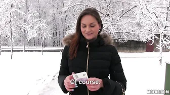 Description: It may be cold outside but that doesn t stop Barbara Bieber from flashing her perky big tits for a stranger with a fat wad of cash. This Euro hottie is so wild that she follows dude back to a private stairwell where she gets down and sucks dick.