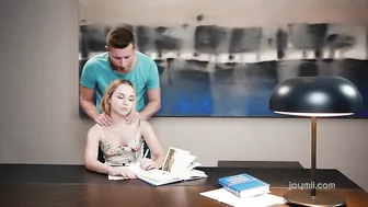 Description: Mona is studying for an exam she has bright and early tomorrow morning. Nick tried to distract her by playing the piano and she becomes annoyed with him she cannot study with so much noise. Nick feels bad for interrupting her and decides to make up for it by giving her a massage and hoping that will relieve some stress...