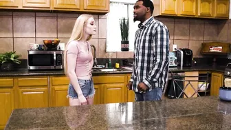 Description: Emma Stelleto comes into the kitchen and asks Rome Majors why he acts like he owns the house. He says he does own half the house and just wants to enjoy his coffee. She says Oh like you enjoy watching me take showers. He spits out his coffee and begs her not to tell her mother. She says she will unless he shows her his dick then they fuck on the granite countertop until he comes on her little titties.