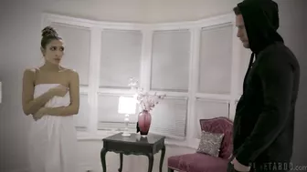 Description: SCENE OPENS on a teen Meg Gianna Dior in her bra and panties on her bed. She is sensually humping a pillow between her legs moaning as she thrusts into it. Shes holding her phone in her other hand and every time she gets a message she slows her humping to look at the phone and type a response. Yes I AM all alone right now my parents wont be back for hours... she says out loud with a smile as she types and then sends the message. She goes back to playing with herself. A few moments later her phone sounds again. Yes I AM over 18 eggplant emoji she says dictating her text all the way down to the emoji she adds for effect. She goes back to pleasuring herself. Seconds pass and her phone sounds a third time. Oooh I cant wait for you to cum inside me she says as she types. She sends the text and then types up another message. My address is.... She hits send. Almost instantly she gets a single one line reply which we see displayed on the phone. see you soon. it reads. With a smile Meg puts down the phone and gets back to pleasuring herself with the pillow. Her ass is mesmerizing in her skimpy underwear as she bucks her hips back and forth. She licks a finger of her now free hand. She slips the finger through the waistband of her underwear and starts fingering her pussy pressing in deeper as she backs into it after each thrust forward into the pillow. She enjoys this rhythm for about a half minute before pausing to pull a dildo and lube out of her nightstand drawer. She lowers her underwear and lubes up the dildo with gentle strokes of her hand over the plastic. Eagerly she sticks it in her pussy easing it deeper into herself with soft moans. She begins fucking herself with the dildo and fingering herself on the bed for several minutes. Her phone sounds again and Meg wonders aloud to herself as she picks up her phone whether he got lost. She looks at her messages and remarks that its a message from another guy. She reads it silently to herself and bites her lip and grins. Im busy for a little while... but how about in an hour she says as she types. She types with one hand and we see her other hand playing idly with her lubed up pussy as she waits for a response. Sure I can host. Ill text you the address... She types rapidly into her phone and hits send. She starts to type another message I cant wait for you to... At the moment where she would say the words cum inside we cut to the title plate of the same name. TITLE PLATE CUT TO another day Meg is wearing some casual clothing and milling about her bedroom. She is dancing energetically as she tidies up her room. Her booty shakes enticingly as she moves. We watch from a male gaze POV for a good half minute. Then suddenly we cut to a different POV a voyeuristic one watching her dancing from outside her window which is ajar. We cut back to the interior of her room then back again to the voyeurs perspective. Meg finishes cleaning and then decides to unwind with a bath. We watch her undress from the interior male gaze POV though we see the tail end of her undressing and her leaving the room from the voyeur POV. After a few seconds of staring into the empty room the voyeur POV seems to get up and walk forward. CUT TO inside the washroom where Meg is naked and is turning on the water for the bathtub. She checks the temperature of the water with her hand then makes an impatient face. She waits for a few moments awkwardly. Suddenly she hears a faint creaking sound from the other room. She cranes her neck to listen then asks if anyone is there. She peeks around the bathroom door and sees a strange man Seth Gamble looking back at her. The intruder is standing calmly hands in the pockets of his ratty jacket his hood up over his head. He looks tough and intimidating. Megs heart is racing and her breath is shallow and panicked clearly frightened by the stranger standing just to the side of the doorway out of the bathroom. She asks him what hes doing how did he get in here The stranger replies You left your door open in an eerily calm soft voice. His calmness just makes Meg even more nervous and she shrinks back a bit. Why is he here I got your invite the intruder answers. Meg looks him up and down still frightened but also confused. She didnt send him any invites. The intruder tells her softly that she should be more careful with giving out her address so freely online. The internet can be such a scary place. Meg tries to muster up the courage to seem less afraid than she really is. Im not really in the mood for sex right now she says trying to reason with him. Thats too bad he replies sounding disappointed I am. Meg gulps and tries to ignore his reply. She tries to lie and suggests that maybe he could give her his contact information and they could hook up another time. The intruder pouts and says why not do it now Hes here shes naked now seems like as good a time as any. Meg insists a bit more strongly that now is NOT a good time. Oh... ok... the intruder says disappointed but doesnt press the issue further. Meg waits expecting him to say something move leave but he just stands there. Her voice wavers as she asks why he wont leave. YOU can leave he says almost as an invitation the doors right there. She stands still in place terrified. Almost tauntingly he follows up by asking her what shes waiting for. She starts to walk towards the door slow and hesitant and gets a couple of steps forward until he makes a quick gesture causing her to flinch backwards nothing crazy just something to spook her. He laughs almost playfully he was just teasing her. She really can just walk right past him if she wants to leave. What is she afraid of But instead of walking forward again Meg shrinks back further into a corner. The intruder remarks that it seems like she doesnt want to leave it seems like she wants to stay. Please Meg begs but is too scared to get more words out besides incoherent mumbling. The intruder takes a step forward into the room and asks please