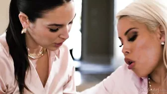 Description: A boss Bridgette B has invited two of her employees Katrina Colt and Lulu Chu over to her house for a talk. As soon as Katrina and Lulu see each other its obvious that there is tension between them. As they all sit down and talk its revealed that Katrina and Lulu dont get along at work and that it has been affecting productivity. Since theyre great workers Bridgette wants to find out what the source of the problem is. Katrina and Lulu start bickering between themselves though there are small hints of attraction between them. Bridgette listens and tries to mediate but then starts to grow suspicious as she catches the hints of attraction. Before Katrina and Lulus bickering escalates further Bridgette insists that she knows the problem they have a crush on each other! Katrina and Lulu are stunned. They try to deny their attraction but Bridgette is adamant and they soon realize that shes right. As soon as its all out in the open there are even more hints of attraction between Katrina and Lulu revealing more and more of their true feelings for each other. Bridgette then boldly insists that Katrina and Lulu need to have sex to get out all of that pent up energy otherwise their work will always suffer. Katrina and Lulu are shocked by the suggestion but after some thought agree to take things further under Bridgettes guidance. But theyre slow and tentative to start with during the intimate encounter which leads to Bridgette getting impatient and taking charge as she joins them!