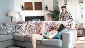 Description: Liz Jordan is pleasuring herself in the living room stroking her pussy over her panties and taking out her breasts so she can squeeze them and pinch her nipples. As she pulls her panties aside so she can touch herself even more a man Robby Apples enters the house without her noticing. Robby is shocked but also enticed by the sight of Liz masturbating and quietly spies on her as she remains unaware of his presence. But when he accidentally makes a sound Liz is startled and asks him who he is. Robby sheepishly explains that hes a friend of Lizs parent. He came to get back some stuff that Lizs parent borrowed and he was told that he could just let himself in. Now that the shock has worn off Liz is still feeling horny so she seductively suggests that Robby can help her finish what she started. Robby is surprised but also eager... as long as Liz promises not to tell her parent about this of course!