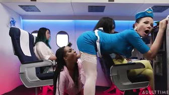 Description: Best friends Bella and Anna Cali Sweets and Roxie Sinner are flying together for their yearly vacation when the hot futa flight attendant Suzy Alison Rey catches their eye. Suzy looks absolutely gorgeous in her tight uniform her short skirt barely containing the massive cock that dangles underneath. Although Belle and Anna are best friends theyre also highly competitive and this is put on full display as they try to one up each other by performing various sneaky sex acts with Suzy. This soon evolves into a full fledged threesome between the aisles where they fuck each other and cum all over themselves not paying any mind to the bewildered passengers nearby.