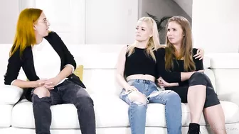 Description: Charlotte Stokely and Lena Paul two partners in crime are planning their next big adventure. However they have to be careful because Charlottes already been caught and spent time behind bars before so it cant happen again! Although Lenas skeptical especially because of regular check ins by Charlottes probation officer shes down to experience that rush again. They are interrupted by a knock on the door. As Charlotte answers the door shes surprised to see none other than April ONeil her probation officer. Charlotte is startled loudly greeting her so that Lena is secretly made aware that theyve got to keep everything under wraps. April is amused by Charlottes behavior insisting that she was just in town and thought shed do a checkup while there. As Charlotte lets April in and settles down on the couch with Lena it doesnt take a genius to know Charlotte and Lena are hiding something. April questions how they know each other reminding Charlotte that its against her probation to consort with any criminals... In that moment to save them both Charlotte lies and claims that they are girlfriends! Well you guys wouldnt mind kissing then just to put my mind at ease April casually challenges. Although Charlotte and Lena claim that theyre girlfriends when they do share the requested kiss its nothing more than a peck on the lips. Unconvinced April challenges them to take it even further... unless they really have something to hide. Charlotte and Lena know theyre on the verge of being found out so they go all in to save their skin. Right there in front of April they strip down getting hot and heavy. Although its awkward between them at first they soon get into it relishing the taste of each others pussies. As they work each other up to a glorious release under Aprils watchful eyes will it be enough to stay out of trouble Story inspired by an original submission by Girlsway member Venturer!