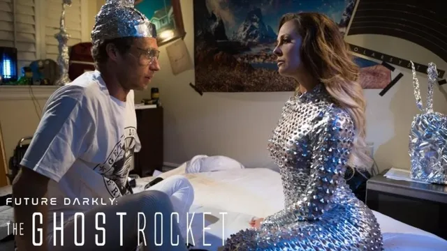 Description: Those Whom We Love Are Often The Most Alien To Us. Christopher Paolini SCENE opens on an empty field late one night. The stars twinkle in the sky as the camera slowly tracks back to reveal Roger Michael Vegas looking through a telescope. The self published conspiracy theorist is wearing nothing but his boxer shorts a UFO t shirt and LED translucent glasses. His hair is greased back and he is guzzling a can of liquid caffeine as he shifts from the telescope to the back of his flatbed truck where he finishes setting up his latest invention. Its a small but powerful antenna designed to transmit mathematical equations into space in the hopes of contacting a ghost rocket. Roger believes this long disputed UFO phenomenon is the key to contacting alien life forms. As he connects the final pieces of his machine together he mutters into a makeshift gadget on his wrist In 1946 and 1947 numerous reports occurred of ghost rockets appearing over Scandinavian countries primarily Sweden which then spread into other European countries. In 2046 similar reports resurfaced of ghost rockets appearing in the Pacific Northwest and down through parts of California and Mexico. All 200 sightings have been refuted by the US government despite being verified with radar returns and in some cases physical fragments... He puts his wrist down stripping off his shirt and putting a tin foil cap on his head. ...Until now you sons of bitches! He shouts into the night removing his glasses placing transmitters in his ears and rubbing his chest with petroleum jelly. He plugs some final code into his laptop before hitting enter and pointing his antenna towards the sky. A static sound in his ears grows louder and louder as he spins the antenna around. Finally it connects with something and a beam of light penetrates the sky and strikes the antenna. Then as quickly as it started the beam disappears and Roger falls to the ground. The antenna lies at his side melted and destroyed. CUT TO TITLE PLATE Roger drives home from the field feeling frustrated. He mutters and swears to himself before rolling down the window and throwing his antenna out. He puts his wrist to his mouth and begins to report the failed experiment when suddenly he comes upon a beautiful woman Cherie DeVille standing in the middle of the road. She is shimmering in a metallic body suit with windswept hair and staring at him like a deer in headlights. He slams on the breaks. They regard each other for a moment before she starts to approach the car. Roger is scared. What is this strange woman doing out here She presses her hands on his driver side window trying to open it and speaking in a strange language he doesnt understand. Finally Roger rolls it down. What... do... you... want He stammers. She stops takes a moment to compute what she just heard and then begins talking slowly again in English. Hello human male she says. May I please enter your craft so I may breed with you Who... are... you He asks slowly. The woman unfolds her arms and puts her hands in front of her. The broken antenna appears. I am responding to your signal she says. Roger stares at the antenna in disbelief. You were on a ghost rocket He mutters. Affirmative. she replies and the antenna disappears. I have been sent to earth to breed with a human male. Are you a human male How do I know youre not just putting me on He asks. Do you require proof She asks. He nods. Her hands pull apart her face. He is horrified by what he sees and slumps back before raising his arms in surrender and stating that he is indeed a human male. She stops puts her face back and revealing her human form again smiles. Excellent! We must hurry and get to a breeding chamber she says. Stunned Roger opens up the passenger door and she steps inside. Is my bedroom ok He asks getting in himself. Affirmative She says smiling. They arrive at Rogers home. It is bare bones with only UFO posters on the wall stacks of papers and a basic blowup mattress in the middle. The woman walks in and examines the surroundings. Human males are strange and primitive life forms she says matter of factly. Roger nervously clears an area around his bed and invites her to sit. I would like to consume your seed now so it may stimulate this human shell and support my arousal. Roger flushes red. She unzips her top to expose her breasts and puts his hands on her. He has never felt anything so good in his life. She tells him to take out his member. Nervously he does and she slips her hand around his cock stroking it all the while exclaiming how fascinating his human penis is. Finally she puts his hard cock into her mouth tasting him before she guides him into her pussy. He gasps as she rides his cock. Roger can hardly believe his good fortune but how will he react when its HIS turn to be probed Winner Most Outrageous Sex Scene Cherie DeVille and Michael Vegas AVN 2020 Nominated Best Art Direction AVN 2020 Nominated Best Special Effects AVN 2020