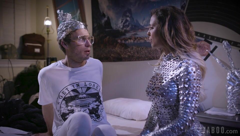 Description: Those Whom We Love Are Often The Most Alien To Us. Christopher Paolini SCENE opens on an empty field late one night. The stars twinkle in the sky as the camera slowly tracks back to reveal Roger Michael Vegas looking through a telescope. The self published conspiracy theorist is wearing nothing but his boxer shorts a UFO t shirt and LED translucent glasses. His hair is greased back and he is guzzling a can of liquid caffeine as he shifts from the telescope to the back of his flatbed truck where he finishes setting up his latest invention. Its a small but powerful antenna designed to transmit mathematical equations into space in the hopes of contacting a ghost rocket. Roger believes this long disputed UFO phenomenon is the key to contacting alien life forms. As he connects the final pieces of his machine together he mutters into a makeshift gadget on his wrist In 1946 and 1947 numerous reports occurred of ghost rockets appearing over Scandinavian countries primarily Sweden which then spread into other European countries. In 2046 similar reports resurfaced of ghost rockets appearing in the Pacific Northwest and down through parts of California and Mexico. All 200 sightings have been refuted by the US government despite being verified with radar returns and in some cases physical fragments... He puts his wrist down stripping off his shirt and putting a tin foil cap on his head. ...Until now you sons of bitches! He shouts into the night removing his glasses placing transmitters in his ears and rubbing his chest with petroleum jelly. He plugs some final code into his laptop before hitting enter and pointing his antenna towards the sky. A static sound in his ears grows louder and louder as he spins the antenna around. Finally it connects with something and a beam of light penetrates the sky and strikes the antenna. Then as quickly as it started the beam disappears and Roger falls to the ground. The antenna lies at his side melted and destroyed. CUT TO TITLE PLATE Roger drives home from the field feeling frustrated. He mutters and swears to himself before rolling down the window and throwing his antenna out. He puts his wrist to his mouth and begins to report the failed experiment when suddenly he comes upon a beautiful woman Cherie DeVille standing in the middle of the road. She is shimmering in a metallic body suit with windswept hair and staring at him like a deer in headlights. He slams on the breaks. They regard each other for a moment before she starts to approach the car. Roger is scared. What is this strange woman doing out here She presses her hands on his driver side window trying to open it and speaking in a strange language he doesnt understand. Finally Roger rolls it down. What... do... you... want He stammers. She stops takes a moment to compute what she just heard and then begins talking slowly again in English. Hello human male she says. May I please enter your craft so I may breed with you Who... are... you He asks slowly. The woman unfolds her arms and puts her hands in front of her. The broken antenna appears. I am responding to your signal she says. Roger stares at the antenna in disbelief. You were on a ghost rocket He mutters. Affirmative. she replies and the antenna disappears. I have been sent to earth to breed with a human male. Are you a human male How do I know youre not just putting me on He asks. Do you require proof She asks. He nods. Her hands pull apart her face. He is horrified by what he sees and slumps back before raising his arms in surrender and stating that he is indeed a human male. She stops puts her face back and revealing her human form again smiles. Excellent! We must hurry and get to a breeding chamber she says. Stunned Roger opens up the passenger door and she steps inside. Is my bedroom ok He asks getting in himself. Affirmative She says smiling. They arrive at Rogers home. It is bare bones with only UFO posters on the wall stacks of papers and a basic blowup mattress in the middle. The woman walks in and examines the surroundings. Human males are strange and primitive life forms she says matter of factly. Roger nervously clears an area around his bed and invites her to sit. I would like to consume your seed now so it may stimulate this human shell and support my arousal. Roger flushes red. She unzips her top to expose her breasts and puts his hands on her. He has never felt anything so good in his life. She tells him to take out his member. Nervously he does and she slips her hand around his cock stroking it all the while exclaiming how fascinating his human penis is. Finally she puts his hard cock into her mouth tasting him before she guides him into her pussy. He gasps as she rides his cock. Roger can hardly believe his good fortune but how will he react when its HIS turn to be probed Winner Most Outrageous Sex Scene Cherie DeVille and Michael Vegas AVN 2020 Nominated Best Art Direction AVN 2020 Nominated Best Special Effects AVN 2020