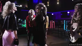 Description: Two rival rock bands Twisted Fister led by Micki Jett Charlotte Stokely and MegaLez led by Rhonda Rotten Lena Paul arrive at an empty venue for a battle of the bands. The bands have a long history of competing with each other. The girls from Twisted Fister Micki Joan Katrina Jade Kim Kira Noir and Patti Payton Preslee and the ladies from MegaLez Rhonda Lila Karla Kush Charlie Chloe Cherry and Darla Giselle Palmer cant wait to face off and finally settle whos the most bitchin band once and for all! But their dreams are dashed when the venue manager Vince Stix Zadinia comes in and tells the girls that theres a hurricane on the way. The battle of the bands is canceled! Vinces assistant Kelly Anastasia Rose then tells them that the storm is too severe for anyone to leave. The bands decide to have the battle of the bands anyway. Both bands rock out and with the battle done the drummers and bassists leave to get some air. Even though the bands now have a begrudging respect for each other they still cant decide who won the battle. Micki suggests that there is really only one way left to see whos the best by seeing who FUCKS the best. Rhondas not backing down so she and Lila come together with Micki and Joan for a totally rad foursome. Forget about ROCKING the hardest...the fights on to see who FUCKS the hardest!