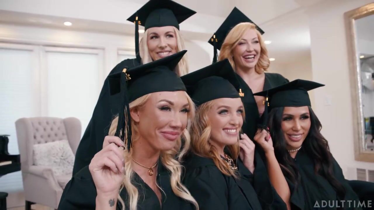 Description: Five women Madison Blaze Charlie Forde Adira Allure Jena LaRose Bunny Madison are graduating from a continuing education program and are having a photo shoot to celebrate. However the photographer Kai Jaxon becomes increasingly flustered as the excited ladies get naughtier and naughtier even flashing him as hes taking a photo. He eventually gives in to temptation and lets the gorgeous ladies reverse gangbang him!