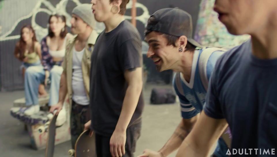 Description: Lucky Fate a skater just trying to find his way in late 90s LA rolls up to his favorite skatepark. There are good vibes all around with people shredding the pavement and grinding those rails like theres no tomorrow. Its clear that whatever else may be going on in Luckys unlucky life he feels right at home here. Sometime later Lucky hangs out with his friend Kim Charlotte Sins who asks him what hell do once Paul goes to jail tomorrow. Lucky says hell probably take over Pauls business but Kim warns him that that might get Lucky arrested too. After all police are keeping tabs on the warehouse day and night. Robby Echo one of Luckys other friends notices a drawing of Morgan Davis Maya Woulfe in Luckys sketchbook. When it becomes clear that Lucky has a crush on her Robby Kim and a few other friends Lilly Bell Vanna Bardot and Nathan Bronson all start cheering for Lucky to give Morgan a call. An hour later Lucky Kim and Robby pick Morgan up. They take off down the road heading to Robbys friends house. When they arrive at the location they are wowed by a glamorous backyard including a heated pool. They frolic together in the water having the time of their lives. At one point Lucky and Morgan go inside to dry off leaving Kim and Robby alone by the pool. It seems like things are only getting started between these two however as Kim pulls Robbys underwear off to reveal his hard cock. They run off to a secluded corner of the backyard oasis and have playful energetic sex which includes some deep poolside anal. Far out man!