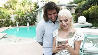 Description: Jay Romero is posing for selfies with his girlfriend Kiara Cole. Then Kiaras sibling Kate Bloom shows up and she offers to be their photographer to make things easier. The couple happily accepts and they strike a few poses as Kate takes pictures of them. Afterwards Kate asks if Jay can use her phone to take some pictures of her. Jay is happy to return the favor so he agrees. However to Jays surprise Kate takes her top off exposing her breasts! Kiara is in shock. After Jay takes a few topless photos of Kate she removes her shorts and panties as well and starts posing nude for him. Jay happily takes a few more photos causing Kiara to freak out and yell at both of them. Kiara then storms off and Jay chases after her. Later on Kate is still hanging around in the nude and asks Jay how things went with Kiara. Jay says that Kiara took off to get her nails done which is apparently a sign that shes REALLY angry. Jay tells Kate that maybe she shouldnt do that kind of stuff in front of Kiara anymore. Well since Kiara isnt there right now Kate holds her phone out to Jay and asks him to take more nude photos of her. Jay agrees but then Kate encourages him to stick his finger and then his tongue into her pussy to get better photos. Eventually she manages to convince him to pound his cock in there too...