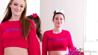Description: Alison Rey Maya Kendrick and Lana Rhoades are practicing their cheerleading routine. When they finish up the girls decide to get together at Alisons house to study. Later on that afternoon the girls are about to plan their study session but before they begin Lana asks if she could jump in the shower first. As Lana gets undressed in the bathroom Alison and Maya talk about seducing her. Theyve both been really into her and have been wanting to fuck her for the longest time. This might be their best chance! The girls open the door and grab a naked Lana and throw her on the bed. When Lana asks the girls what they think theyre doing they start groping her and sucking on her tits. They tell her that shes done such a great job as the top cheerleader that they want to thank her properly. Lana has a boyfriend and no interest in fucking with either of them but she has a hard time fighting them off. They kiss her neck and sucks on her tits insisting that all they want is to make her feel good. Lana is their captain and cant risk losing control of her troop but the girls dont care. They want her and are gonna have her whether she likes it or not. They lie her down and start licking her body. Once she makes them swear that this will never leave the room she starts easing into it. Before she knows it Lanas got a mouthful of pussy and is the one leading the charge.
