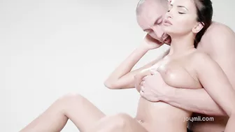 Description: Alyssia is enjoying the massage that Stirling is giving her. She cannot help but to be turned on during this massage session and starts to moan whenever he touches her. Stirling turns her over and pours oil all over her perky breasts and pulls her closer to him rubbing oil on her wet pussy. He takes out a personal massager and massages her with it until she cums.