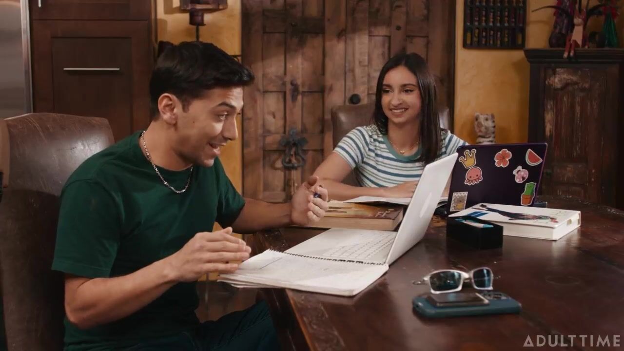 Description: Hailey Rose and Max Fills are both working on a history project for college using two separate laptops. Max is super thankful for Haileys help since he knows NOTHING about Napoleon which is the topic at hand. Thankfully she seems pretty versed in it including how Napoleons wife Josephine deserved soooo much better. But theyre interrupted when Max gets a text about an emergency at work that he has to help with. He excuses himself promising to be back soon but Hailey isnt too bothered. Once alone Hailey continues working on the project but her laptop starts acting up. Since Maxs laptop is right there she figures he wouldnt mind her borrowing his until he gets back. Once she settles in she finds a folder labeled Research and figures it has to do with their history project. But when she opens the folder shes shocked to learn its Maxs porn stash instead! Shes unable to resist checking out the goods getting unexpectedly turned on in the meantime. Since she figures she has a few minutes before Max returns she decides to have a little fun with herself masturbating right then and there... But then Max returns earlier than expected since the emergency was a false alarm catching her in the act! And since Haileys already too far gone its time for them to take a very sexy break.