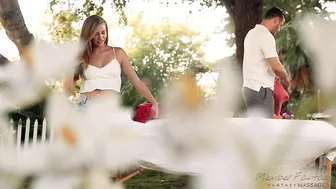 Description: Carolina Sweets is tanning the backyard. She pours oil over her tight young body playing with her nipples as she massages them. Pouring oil on her stomach she rubs it all the way down to her pussy to make sure she gets a nice tan. When her aunt calls her into the house she has a surprise for her. Opening the box Carolina finds a gift certificate for a sensual massage. Not knowing what shes in for her aunt tells her thats shes been waiting for her to turn 18 so she can finally give her this gift a gift every woman must receive. Intrigued she books her appointment and heads over there. Danny Mountain greets his new client and is ready for her. He asks her to take off her clothes and lie down on the table telling her shes in for a wild ride. The massage has barely started but Carolina cant help notice how incredible it feels. She tells him her aunt gave this to her as a graduation present. When he finds out that her aunt is one of his best clients he cant help himself from laughing. So when she grabs his dick and asks him if this is included he complies by pulling it out and putting it in her mouth. Like aunt like niece it seems! Blowing him hard he fucks her face shoving his cock deep down her throat. He turns her over going down on her and devouring her young wet pussy. Shes never been eaten like that before and cant help but moan in ecstasy. Shes ready for his dick again as he shoves it inside her and starts pounding her pussy. Its her turn to fuck him and she climbs on top of his cock riding it nice and hard. Fucking her missionary he cums all over her mouth. Looks like Carolinas gonna have to book another appointment!