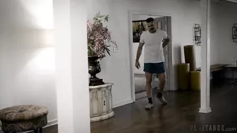 Description: SCENE OPENS on Jim Charles Dera . He lies in bed his eyes still closed after a night of slumber. He opens his eyes and sighs tiredly. He is clearly not excited to get out of bed. He looks over to the other empty side of the bed. His eyes mist with emotion as he runs his hand along the empty side of the bed. His expression is one of loss of longing. Finally he takes a deep breath as if he has summoned the energy to face the day and swings his legs out of bed. Later Jim chats with his son Josh Rion King . It is revealed that they are grieving from the loss of Claire Jims wife and Joshs mother. Jim in particular seems to be having a tough time. Josh tells Jim that his girlfriend Brittany who Jim hasnt met yet will be staying with them for the weekend. Jim is fine with it since both Josh and Brittany are 18 and he trusts them. At that moment the doorbell rings. Announcing that it must be her Josh goes to answer it. A moment later Josh introduces Jim to Brittany Maya Kendrick . Jim is instantly taken with her muttering about her looking like someone. Brittany looks a little wary but hides it well smiling warmly. CUT TO TITLE Later that day the three of them are in the living room watching a movie. Josh and Brittany sit on the couch together while Jim sits on an adjacent chair. Josh has his arm around Brittany and they are both immersed in the movie. Jim tries to concentrate on the movie but his attention keeps wandering to Brittany. Its as if he cant keep his eyes off her his expression betraying an almost unhealthy level of interest. Soon he gets locked into staring at her unable to tear himself away. Suddenly Brittany glances over at him and he hastily looks away almost caught. She gives him a slightly curious look and turns back to the movie. With her focused again on the movie Jims eyes wander back to her. Later that same day Jim walks down the hall. He hears muffled moaning coming from Joshs closed bedroom door. Jim puts his ear closer to the door. It becomes clear that what hes hearing are the sounds of Josh and Brittany having sex. His eyes widen and he looks at the doorknob with temptation. Jim seems to be wrestling internally with what to do. Finally he cant resist and careful not to make a sound slowly turns the doorknob. We dont see whats inside the room. Instead we focus on Jims face as he watches through the crack in the door. We can now hear the sex sounds fully. Jim watches an entranced wild look coming over him. The next day Josh and Jim are relaxing on the couch chatting and sipping on their morning coffees. Brittany joins them taking her seat on the couch next to Josh. Jim again makes an effort not to stare but it is clearly very difficult for him. From Jims POV he watches Brittany. He seems like hes desperately trying to keep himself under control until finally he cant exhaling loudly. Both Josh and Brittany notice. Josh looks at him curiously. Jim clearly fixated on Brittany makes an excuse to get Josh to run out for an errand leaving Jim and Brittany alone. With Josh gone there is a moment of slightly uncomfortable silence as Brittany smiles at Jim politely. Jim smiles back at her holding his gaze for just a little too long. Jim talks to Brittany about his dead wife saying that Brittany reminds him of her. He deliberately plays up his grief eventually intentionally breaking down emotionally. Brittany looks sympathetic but also uncomfortable. Not knowing exactly what to do she places a hand tentatively on his shoulder a sympathetic gesture of support. He looks up at her and smiles. He places his hand over her hand and squeezes it. But he holds her hand for just a LITTLE too long and she politely draws her hand away. But Jim has seen the opening hes been looking for and continues to play up his grief and use her sympathy to convince Brittany to agree to fuck him out of pity. This widower is determined to never be alone again...