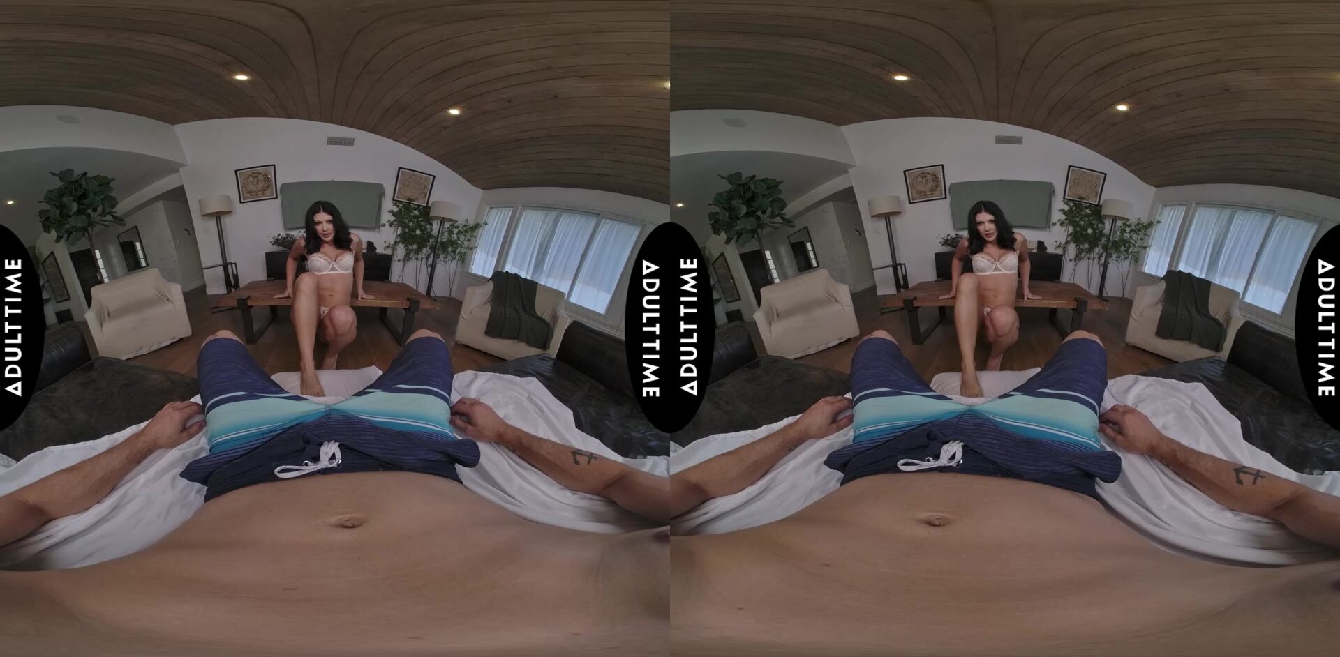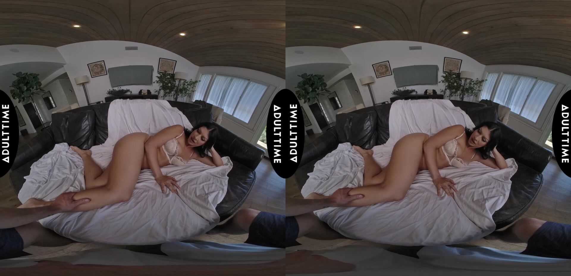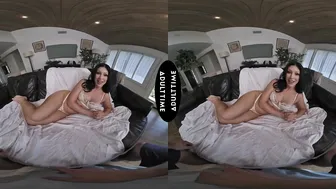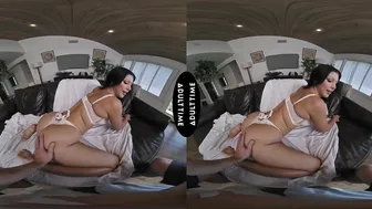Description: Queenie Sateen is wearing only a bra and panties posing in a way that shows off her sexy long legs. However her sense of style extends beyond lingerie... she also wears nice dresses for awards shows including one time when she wore a penis hairpiece! Queenie has been working in the adult industry for around two years now and she loves how much fun shes having. She also shares one of her favorite memories from filming a sex scene and its both hot and funny. Since shes here to create a sexy and immersive VR experience today hopefully shell gain some new wonderful memories to treasure!