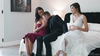 Description: Its Amy Maya Woulfe and Colin Nathan Bronson s special day! Theyre getting ready for their wedding while Colins stepmom Martha Reagan Foxx helps out. But Colin is especially nervous which leads to both Amy and Martha worrying for him. Martha insists she knows how to calm down her stepson and asks Amy to go make them a snack. When Amy returns minutes later she is SHOCKED when she catches Colin sucking on Marthas breast. Martha soothingly opens up about Colins love starved history which led to her coddling him too much. In fact it eventually got to the point where letting him suckle on her breasts was the only way to calm him down so it became sort of the norm for them. Amy is disgusted and debates bailing but Martha tries to convince her not to cancel the wedding. After all Colin was doing this before Amy even knew so nothings changed. Hes still the same sweet sensitive man she loves so why throw that away In fact why doesnt Amy JOIN them so that SHE can learn how best to comfort her new groom too...