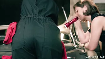 Description: Having your own business can be extremely rewarding but it also has its fair share of speed bumps especially when you have to share the wheel with someone else. Take Octavia Red and Tommy King for example. They run a successful auto shop and are proud to be able to call it theirs. Sure theyve had some creative differences along the way... but theyve created an after work routine thats helped them blow off all the steam they need... With their skin greased up and sweaty they come together for rough sensual sex right there in their garage. They push each other onto the car and suck on each others clits getting their pussies nice and wet. Tommy puts on a strap on and fucks Octava on the hood of the car letting Octavia suck her own juices off of the shaft right after. Then its Tommys turn to get fucked and she loves it when Octavia shoves the dildo into her tight hole. This is one Lez Be Bad episode thats not to be missed with plenty of raunchy action over and under the hood.