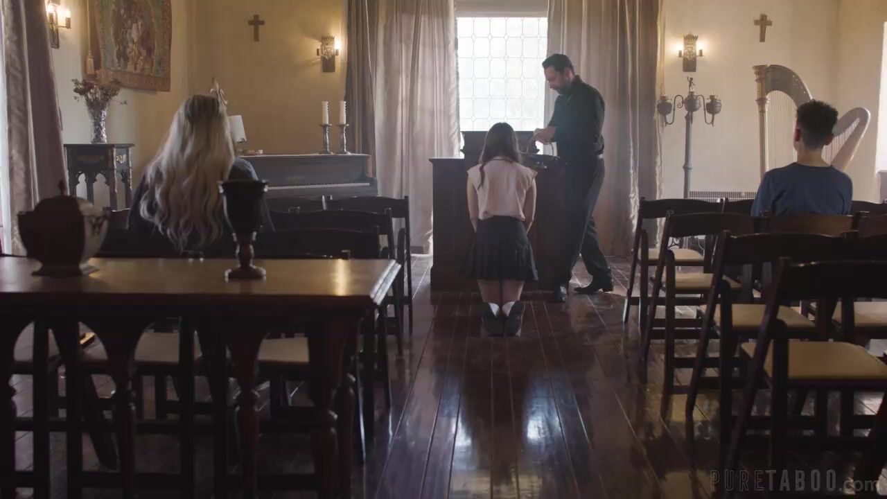 Description: Belle Penelope Kay approaches a priest Tommy Pistol and confesses that shes been feeling tempted by sexual desires even though she knows she should save herself for marriage. The priest advises her to find strength through prayer and penance but Belle asks about what to do if thats not enough. She begins to debate with him about the Churchs obsession with virginity and suggests that having sex in the other place the bottom doesnt count. And even if anal sex DID count wouldnt it be a lesser sin If everyone sins anyway isnt it better to do a lesser sin and then ask God for forgiveness The priest becomes increasingly flustered as Belle suggests that if she did give in to temptation and have sex wouldnt it be a lesser sin if she did it with a good man a man of faith rather than some godless stranger Belle continues to tempt him saying that God would forgive them if they strayed just once. The priest gives in and agrees to fuck Belle in the ass which she secretly knew he would... and soon enough the priest will find out what else Belle knows about him.