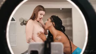 Description: Workout videos of teens exercising with their parents are currently trending on social media so Sky Wonderland has asked her stepmom Cali Sweets to do a workout video with her as well. As they do various exercises Sky cant help but notice how hot Cali looks... especially when Calis leggings rip open in the back partially exposing her ass! Cali doesnt notice the problem right away so she keeps working out while Sky tries to sneak closer and closer peeks at Calis ass. When Cali finally catches her shes flattered and amused leading to them giving each other a very different kind of workout!
