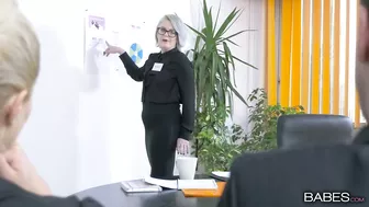 Description: Cherry Kiss and Kai Taylor might ve missed the point of their office s sexual harassment presentation but hearing about forbidden fornication had really put these lusty co workers in the mood! Getting handsy under the table Cherry rubbed Kai s big British knob through his trousers feeling it get hard and throbbing under her seductive touch. Alive with desire the blonde vixen knew she needed a closer look. Dropping to her hands and knees Cherry brought out Kai s cock for a deepthroat blowjob. Well all that sexy gagging and slurping caught the presenter s attention! But as she stormed off to alert HR it was too late to turn back. Seizing their last precious moments together Cherry and Kai tore off each other s clothes for a naughty round of rough desk sex!