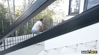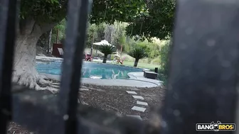 Description: Bella Rolland was working out in the garden when her neighbors Rocket Powers and his buddy were peeking on her. When she walked into her gym the two guys sneaked after her and were watching her through the gym windows until she noticed them. When she asked why are you peeking at me they just answered because you have a gorgeous ass. She loved the compliment. Did they really mean it She worked out hard on it. She was glad somebody noticed. They suggested that a little oil would be good for the workout. Rocket spread a lot of oil over her big butt. She started to feel hot. Would they mind if she would take off her bikini They didnt. Rocket oiled her breasts and pussy. Then he licked her ass. She sucked his dick and they fucked. First in the gym. Then they continued in the bedroom. They fucked in every imaginable position until Rocket came on Bellas ass.