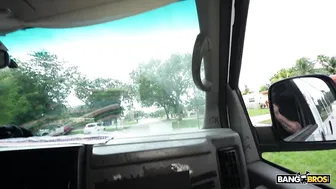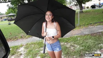 Description: So we pulled up on Lola Rose walking in the rain and offered her an umbrella. She tried to take our umbrella and walk off like she does not know what the bus is about. Talking about money made her turn around real quick though. She got on the bus to show us her tits. She asked us
