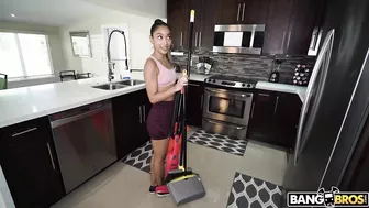 Description: The cleaning company sent of a new girl Sarah Lace instead of the regular girl. She got filled in on her work duties. She does a good job cleaning I wanted more. I ask her to take off her clothes and clean naked. She was a bit nervous. It s not a regular service. I remind her that I m a really good tipper. She gets naked and she has nice tits and pussy. She cleans the bedroom. I can t help to fuck her right then and there. She loves it when I grab her pussy. She begs me to fuck her in the ass. So I make love to her in bed and cum on her face.
