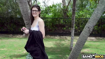Description: This week the bus puled up on this nerdy cutie sitting by a tree reading a book. We made up some shit about paying people to review books. She seemed very interested until we started asking questions about her pierce nipples that were visible through her shirt. She stormed off but we caught up with her and eventually convinced her with some dough to hop in the bus. Inside the bus it was game on son we quickly got her to show us her big ass tits. Not long after Jmac was stretching her pussy with his cock. This chick took a a good ol fucking right before we dumped her on the side of the road.