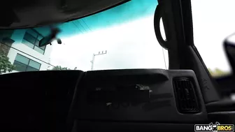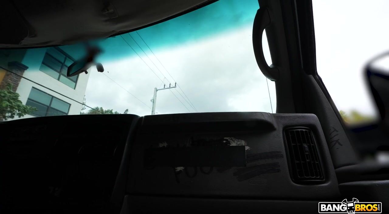 Description: So we pull up on Justine and her van has broken down. Good thing we have a perfectly functioning one right here and we are every bit as much pervs as we are gentleman so we offer assistance. She seems to have it covered but we are the ones trying to uncover what she has under her shirt. We let her know what we are all about and offer her a ride and 500 to see her tiddies. She is actually amused at the fact that 3 grown men are trying to see her titts so she is more than happy to show them. She then catches us off guard by telling us she is a nudist and gets completely naked. Peter not one to miss a party gets naked with her. It all fun and laughs until she notices Peters full on erection. Before we can try to offer her the usual deal she grabs his dick shocking us again. She actually starts leading the dance and asks Peter can she suck it. Now in her mouth Peter begins to fuck her face which makes her even more horny so she just has to sit on it. Her and Peter get the van rocking as the both try to out fuck each other. Peter eventually loses as he cums all over her face hair and tits. We are in awe of a women being so freaky. She lets us know she is in Miami for a good time not a long time. Justine we should be thanking you for the ride.