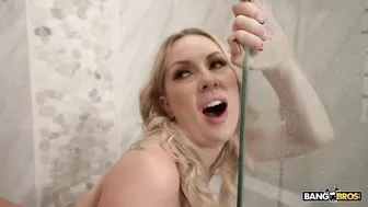 Description: After a long day Sydney Paige comes home to find her stepson s phone. It s full of bangbros anal porn. She marches to the bathroom and talks about fucking in the real world. He says that no one wants to fuck him. After a moment She steps in and fucks her son in her ass. She rips off her shirt and gets down to suck her stepson s cock. it s so long and girthy it s perfect for anal sex. Then she slips it in her asshole. She loves the full feeling of this massive juicy cock in her ass. After a while of anal they fuck in her pussy. He cums in her pussy.