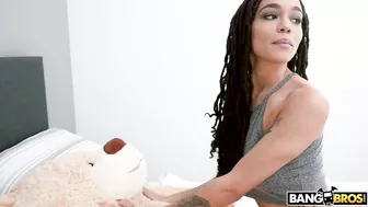 Description: Julie Kay is one horny chick. She scraped a dildo to her giant stuffed toy and decided to ride it. Her step father walked oil the house from work and over heard her moaning loudly. HE proceeded to follow the moaning which lead him to her bedroom. Once he discovered that she was riding her stuffed toy. He surprised her with a real dick. His very own giant black cock. Julie Was delighted to have the real deal in front of her face she shoved her step dads cock far down her throat. From there she got her pussy stretched by her step dads huge black cock all over her bedroom. All culminating with a giant load to her face and mouth.