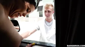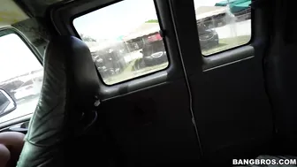Description: Pretty Kenzie ends up getting interviewed inside the bus after some cash offerings. She was hesitant at first of course but that power of the dollar for you We get her talking about the reasoning why she carries a cake and we get some sex questions answered. After a bigger offer we get to see her sucking on a random cock and fucking it. She looks great as she takes this big cock deep inside her from different positions. She ends up getting a huge load all over her face before she gets dropped off with her face being pushed into the cake.