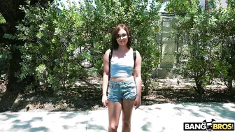 Description: Leana Lovings was a science girl. She was into Biology and Psychology. Usually she would just study all day but today this white van was driving next to her and the guys inside were charming and really fast with words. Also fast with dropping money. All of a sudden she had the chance to make 500 in 2 seconds. Temptation won. She flashed her tits in public. In no time she was in that van getting naked. And as if it was a science experiment that big dick was in her mouth and she was sucking it. Then Tyler Steel fucked her. The van kept moving and bumping so the fucking rhythm was very different from a regular fuck. Plus Tyler knew how to fuck deep and hard. She was screaming in ecstasy. He came in her face. They asked if they could do this more often. She liked that idea. They dropped her off anyway and sped off.