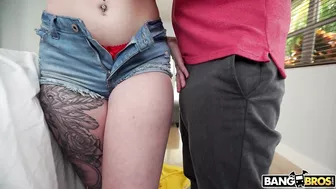 Description: Aria Kay is selling magazines. She s about to hit up Preston Parker s house and he is a hard sell. She ll do anything to close the deal even if she has to show some tits and ass. Preston Parker is intrigued by her sales tactic and invites her inside he starts feeling her large beautiful tits. She loves getting felt up. She gets completely naked and starts blowing his giant cock and tits fuck him right away. He loves it so much that they start fucking on the bed. He makes sweet love to her pussy. He gives her a giant load all over her face and she made a sale.