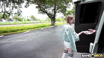 Description: Ailee Anne was heading to that big hip hop festival. But here was no bus in sight. Except for that white bus. Obviously her instincts warned her to get in. She refused and refused. But those guys had so much cash. They were so convincing. And a ride would be so convenient. So she got into the bus. A few hundred dollar bills later she was in her panties only. And this Tyler Steel guy was kind of cute. She was planning on payback sex in Miami anyway. It just came so much quicker than expected. That big cock tasted so good in her mouth. It felt even better in her pussy. Tyler fucked her from the back from the top from the front and good old mish. He shot a full load into her face. She got out of the Bangbus to check on the tire. And just as expected the bus just sped off.