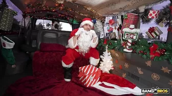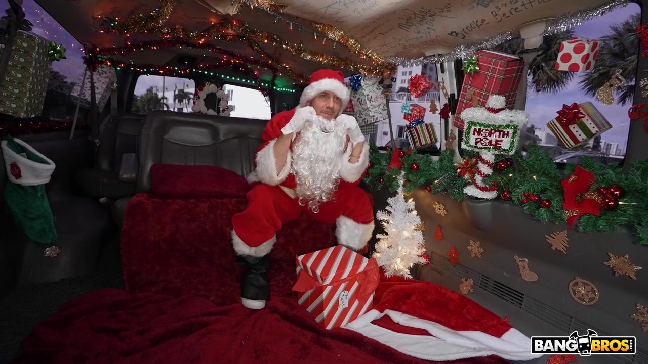 Description: Ashley Alexander was walking by the beach when the famous white van stopped and Tony Rubino dressed as Santa offered her some Christmas cheers. He had a present for her. She would either get 100 in cash. Or 500 and whatever is in a mystery box but only if she would also use it. Tough choice. Luckily the chance for 500 is more worth than just 100 so Ashley opened the mystery box. Inside was one of those vibrating wands that could make any girl orgasm in seconds. The boys told her it would be completely harmless. She could keep her clothes on they would use it through her pants. So she got on the bus. She sat down on Santas lap. Santa started vibing her. Obviously this made her so horny that in no time she was naked getting vibed straight on the pussy sucking Santas cock. Being fucked by Santa in all different positions until Santa shot his Christmas sperm into her face.
