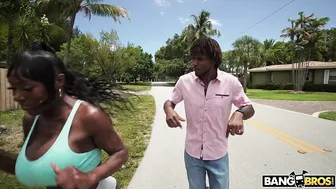 Description: Ebony Mystique was doing her daily jogging run when Jay Bangher saw her running by. He dropped what he was doing and ran after her. Quickly he convinced her that to get the best benefit of jogging you need to get a massage right after. And surprise he was a licensed massage therapist. Ebony fell for it and invited him home. Here she started to twerk for him and insisted he would start to massage her butt. In no time he was eating her butt and then her pussy. Then of course they fucked. They did doggy spoon and riding. And since it was so much fun doggy and spoon again. Jay shot his cum right in her face.