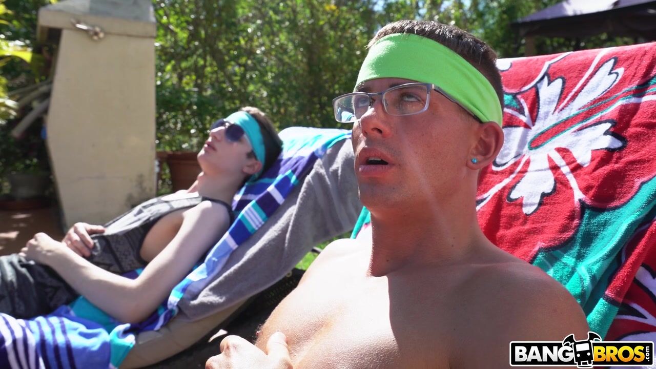 Description: Cory Chase finds a mess in her pool and walks over to her step sons to make sure it gets cleaned up. The horny stepsons day dreams of her inviting him to fuck her but snaps back to reality with a slap. She decides to boss the guys around to clean up and to get her to cum. She has them licking her pussy and ass before she sucks them both off. She takes turns fucking the guys until she makes them both cum all over her face.