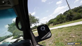 Description: Carina Blair was walking through a park when the famous bus stopped next to her and the boys offered her money for an interview. To not waste too much time with talking they offered 1000 to see her boobs and obviously she said yes without hesitation. She got on the bus flashed them another 1000 to see her butt and they went straight for the action. She pulled out Kaby Snows giant dick and started to suck it. Then they fucked while the bus was driving around until Kaby came into her face.