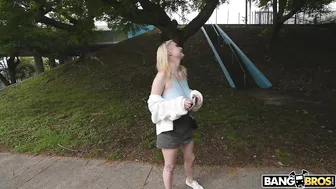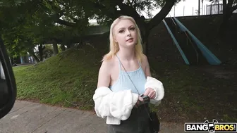 Description: The bus is out here boy! This week we pulled up on this hottie waiting for a ride on the side of the road. We flashed some dough to get her to come talk to us. After chatting her up a bit we managed to convince her to flash us her tits for money. For just a few bucks she had no problems displaying her huge natural tits in public. Eventually we convinced her to hop in the bus to get some more money. This chicks would do anything for the right amount. Inside the bus it didnt take much to get her completely naked and bouncing on Peters cock. Her pussy was stretched in several different positions before he blasted a huge load all over her face.