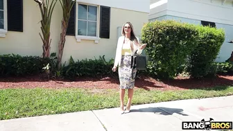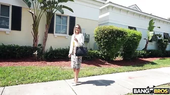 Description: Mandy Rhea was taking a lunch break in front of her law office. You guessed it. The bus pulled up. She was a fancy girl. 500 for her panties didnt do the trick. The boys had to offer 1000. But she agreed there was no way to get them out from underneath that tight skirt in front of her office. She would take them off in the bus. So they got her on the bus. They started to drive in circles. She took off her panties. They showered her with money. A few thousand more for her to strip naked. Then Jay Bangher showed his big dick. Another 100 for her to touch it. That was it. The rest she did without any other encouragement or financial seduction. She sucked the dick. She mounted the dick. She rode the dick. Her pussy swallowed the dick. She fucked the dick. And then the the dick fucked her back until it came all over her glasses.