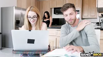 Description: Tia Cyrus wants to bang her roommates boyfriend. This particular day she couldnt resist the urge. She snuck up on him when he was behind the counter and started sucking his dick as he was talking to her roommate. Tia needs to get fucked badly. As her roommate left she demanded him to fuck her. Of course he complied and pounded her tiny pink hole all over their kitchen. Once she was properly fucked it was time to make him nut. He busted a giant load right in her mouth.