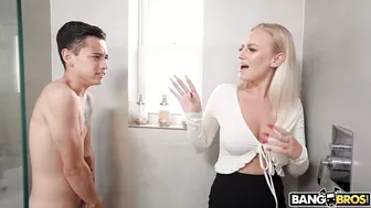 Description: Elana Bunnz was trying to help her step son Juan Loco figure out how to work the shower when he shower suddenly started to work and turned her beautiful top all see through. Since she was half wet why not get fully wet and shower again. Seeing his step mom naked gave Juan a boner. She noticed his big dick and decided it needed a good soap and rinse. While she was at it why not add a little blowjob. Saliva cleans better. Obviously they started to fuck. And they fucked like rabbits until Juan shot his cum over her face.